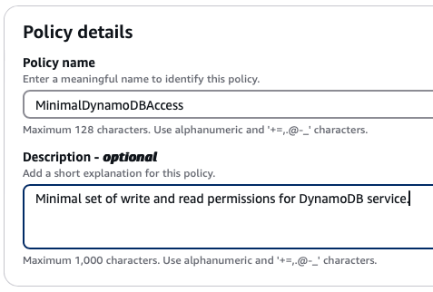 6. Geben Sie einen Namen und (optional) Beschreibung für Ihre Policy ein.