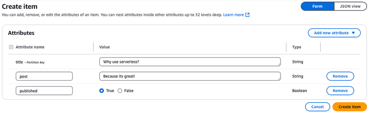 Definieren Sie einen Partition Key (und optional einen Sort Key). z.B.: