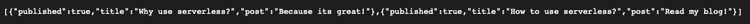 Öffnen Sie die Endpunkt-URL, die im Abschnitt für statisches Webhosting angegeben ist. Sie sollten nun Ihre Webseite sehen mit dem Button „Get posts“. Klicken Sie auf den Button, um die API-Anfrage auszuführen und die zurückgegebenen Daten anzuzeigen.