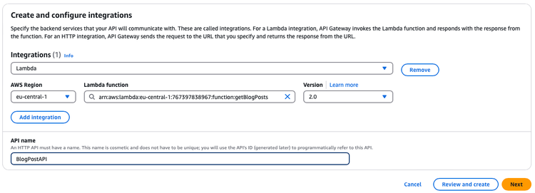 Klicken Sie auf Add integration und wählen Sie Lambda.
